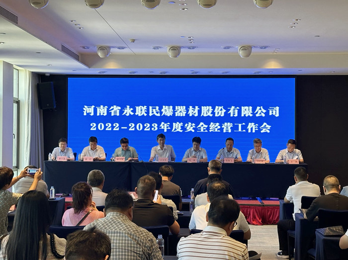 2023年6月30日,河南省永聯(lián)民爆器材股份有限公司2022-2023年度安全經(jīng)營工作會議在鄭州喆鵬酒店召開,公司安全生產(chǎn)委員會成員以及所屬41家分公司負(fù)責(zé)人參加了會議。會議由副總經(jīng)理張鐵飛主持,省委軍民融合辦民爆局局長王玉生應(yīng)邀出席會議并講話。