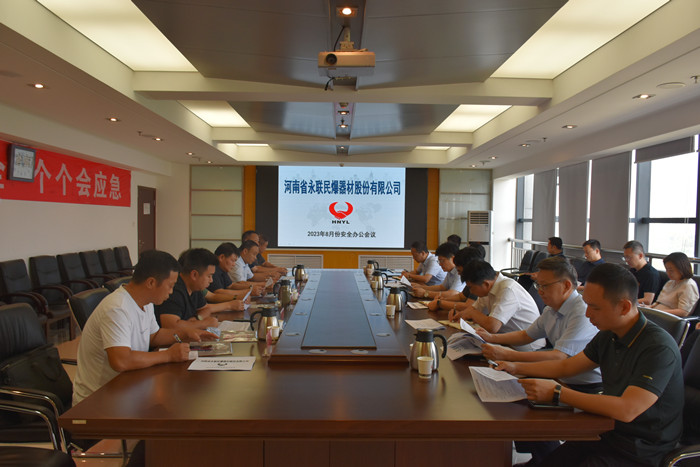 2023年8月31日,河南省永聯民爆器材股份有限公司召開了8月份安全辦公會議,公司領導班子、安委會成員、安委會辦公室成員以及禹州、欒川縣、平頂山力源、新縣、衛輝市、淅川等6家分公司負責人參加了會議。會議由公司副總經理靳義國主持。