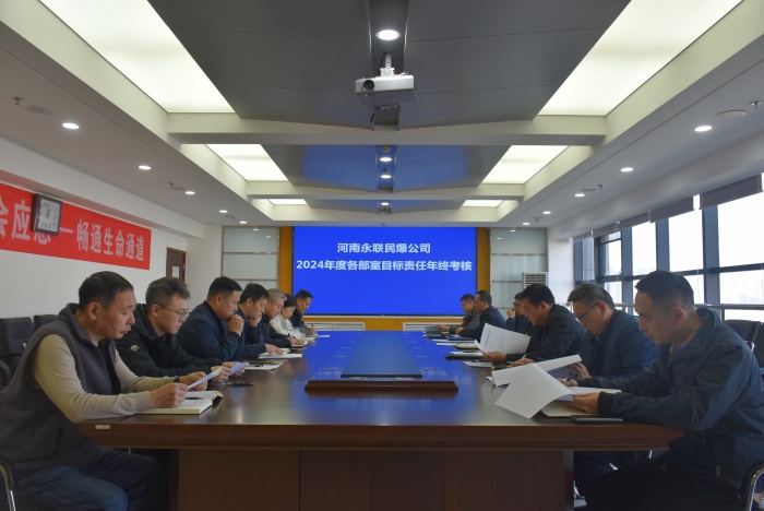 為全面梳理總結2024年工作,助推2025年工作起好步、開好局,1月13日,河南省永聯民爆器材股份有限公司召開2024年度目標責任年終考核大會。公司董事長劉嵩、總經理靳義國、班子成員及各部室負責人參加會議,會議由公司副總經理秦紅主持。